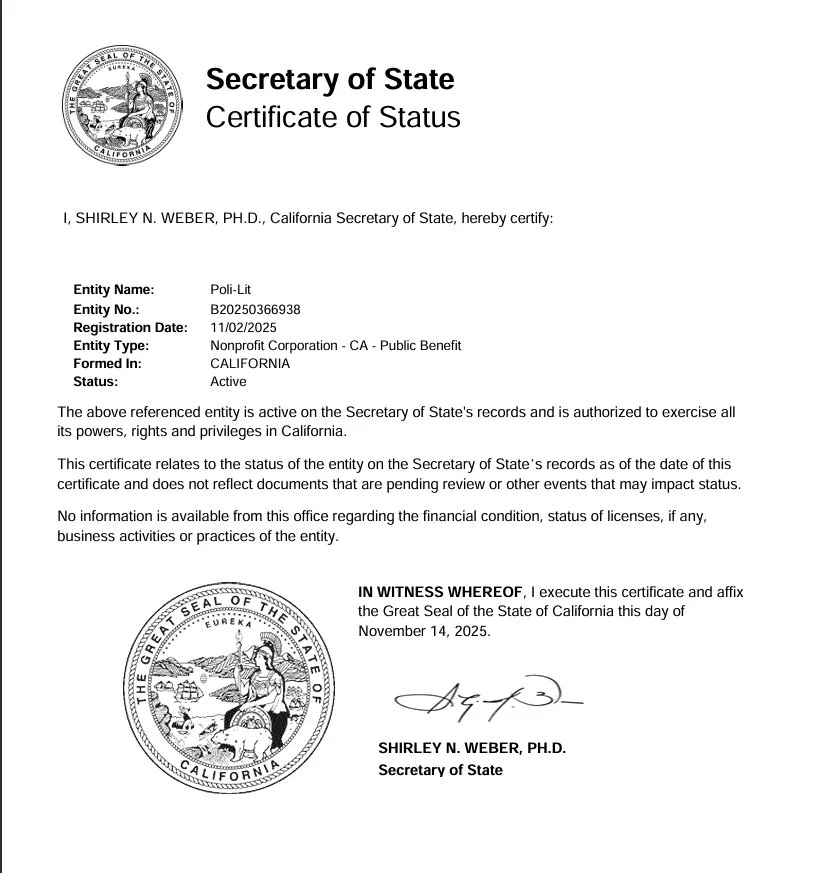 Poli-Lit becomes an official California Non-Profit